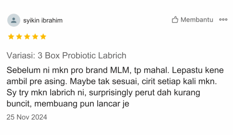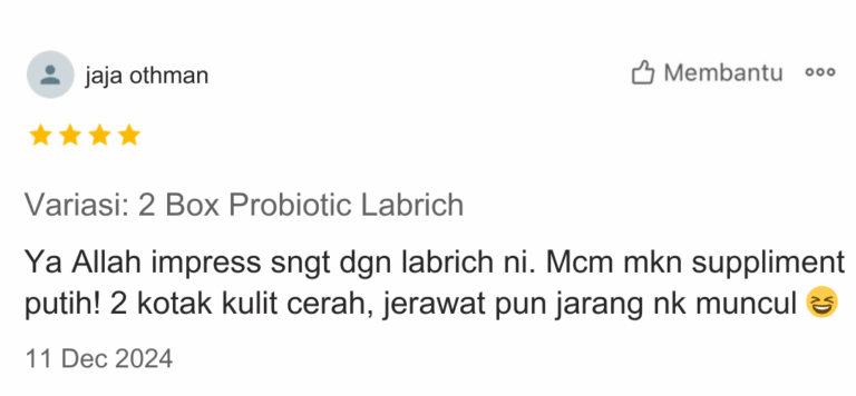Tidak kerana Probiotic Labrich Diletakkan dibawah perkelasan makanan berfungsi sebagai Makanan Tambahan untuk Imuniti Badan. Halal Halvec Terbukti Bahan Kandungan Bebas Dari Bahan Berbahaya.